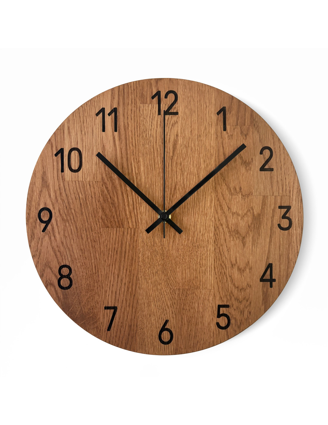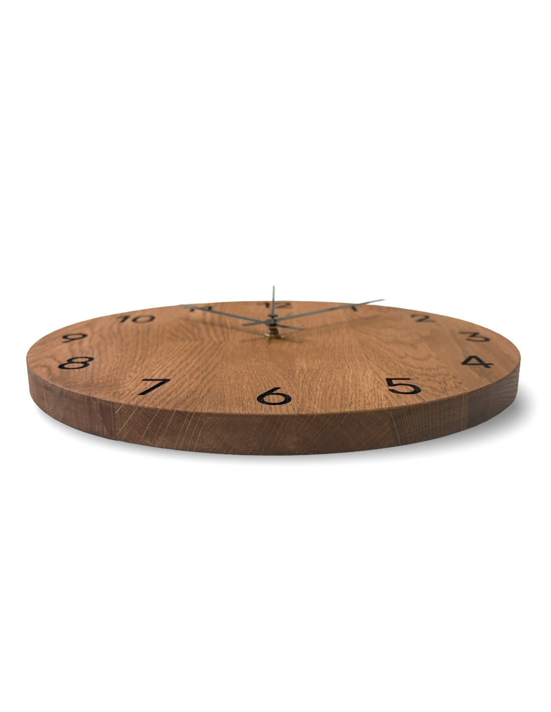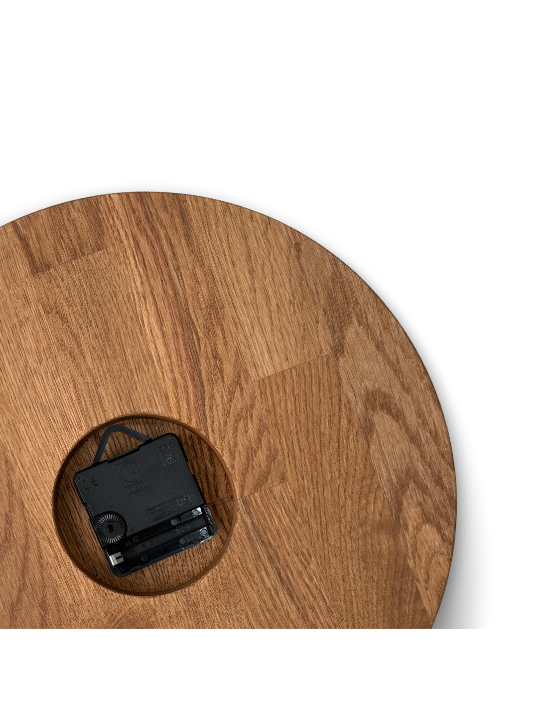 Each clock is made from solid oak panels, which are first precisely cut into the desired shape and size using CNC technology.