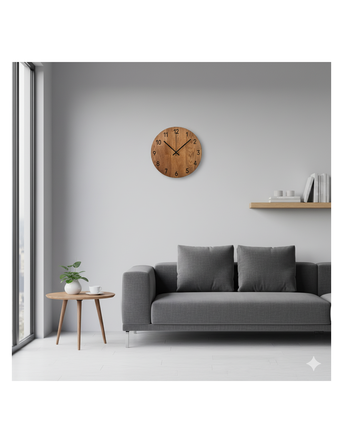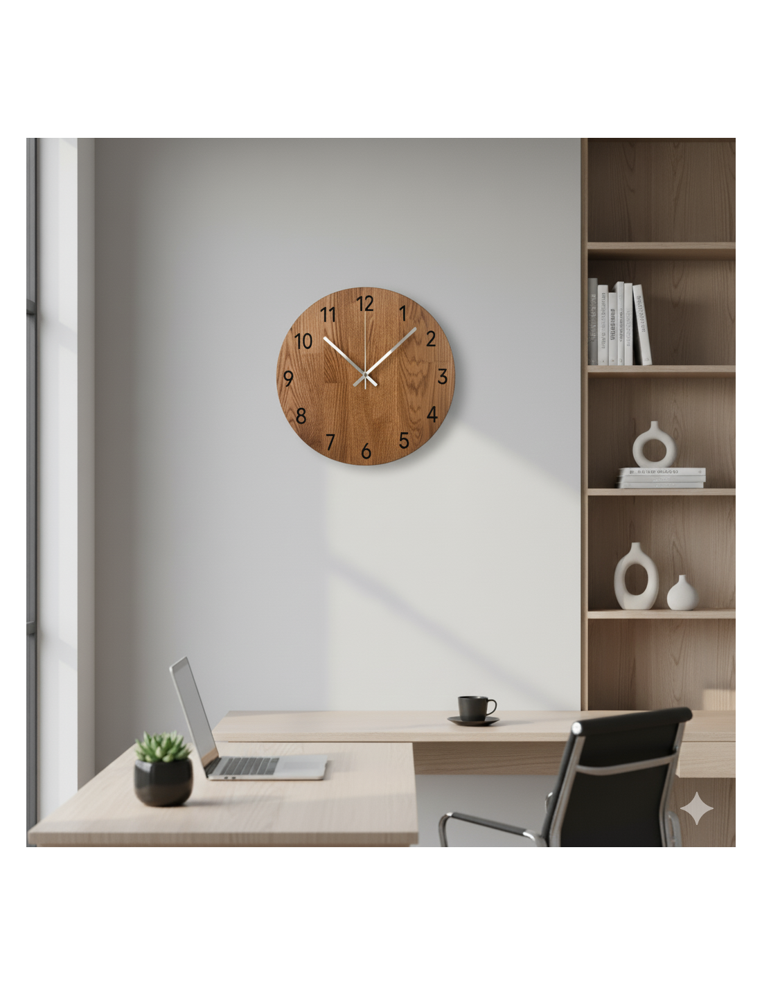 ➡️ Structure: Each clock is unique, as every piece of wood has a different texture, grain arrangement, and wood shade.