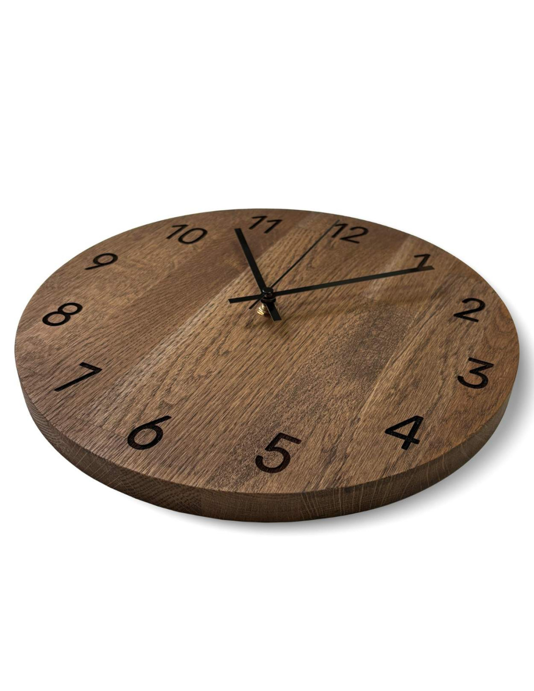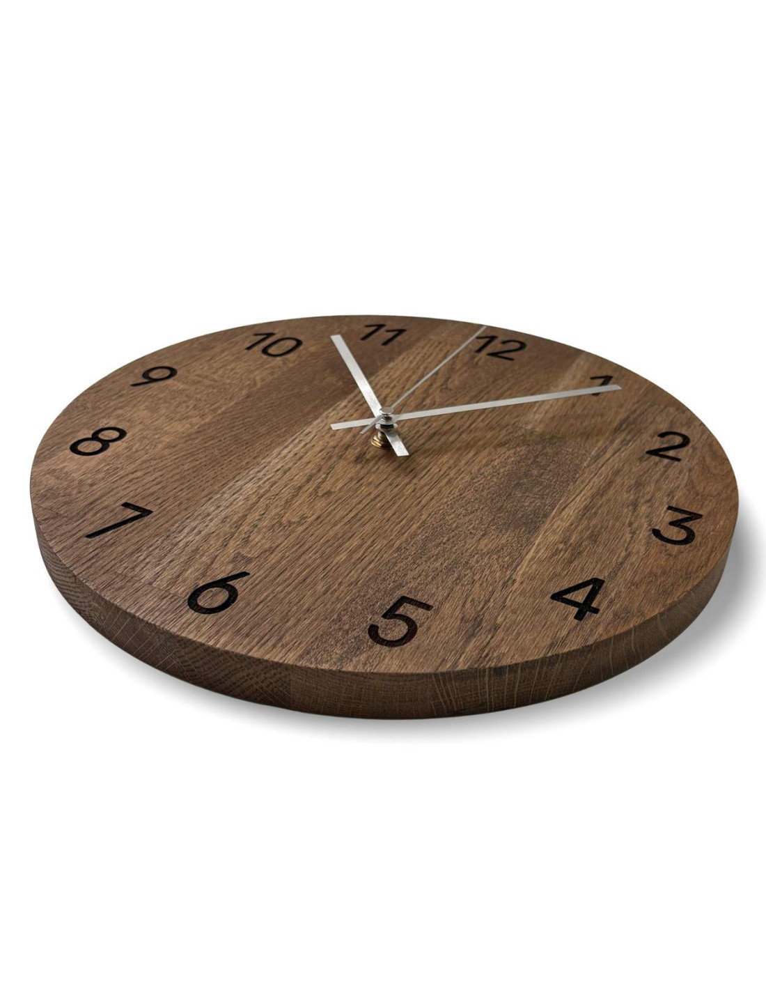 Each clock is made from solid oak panels, which are first precisely cut into the desired shape and size using CNC technology.