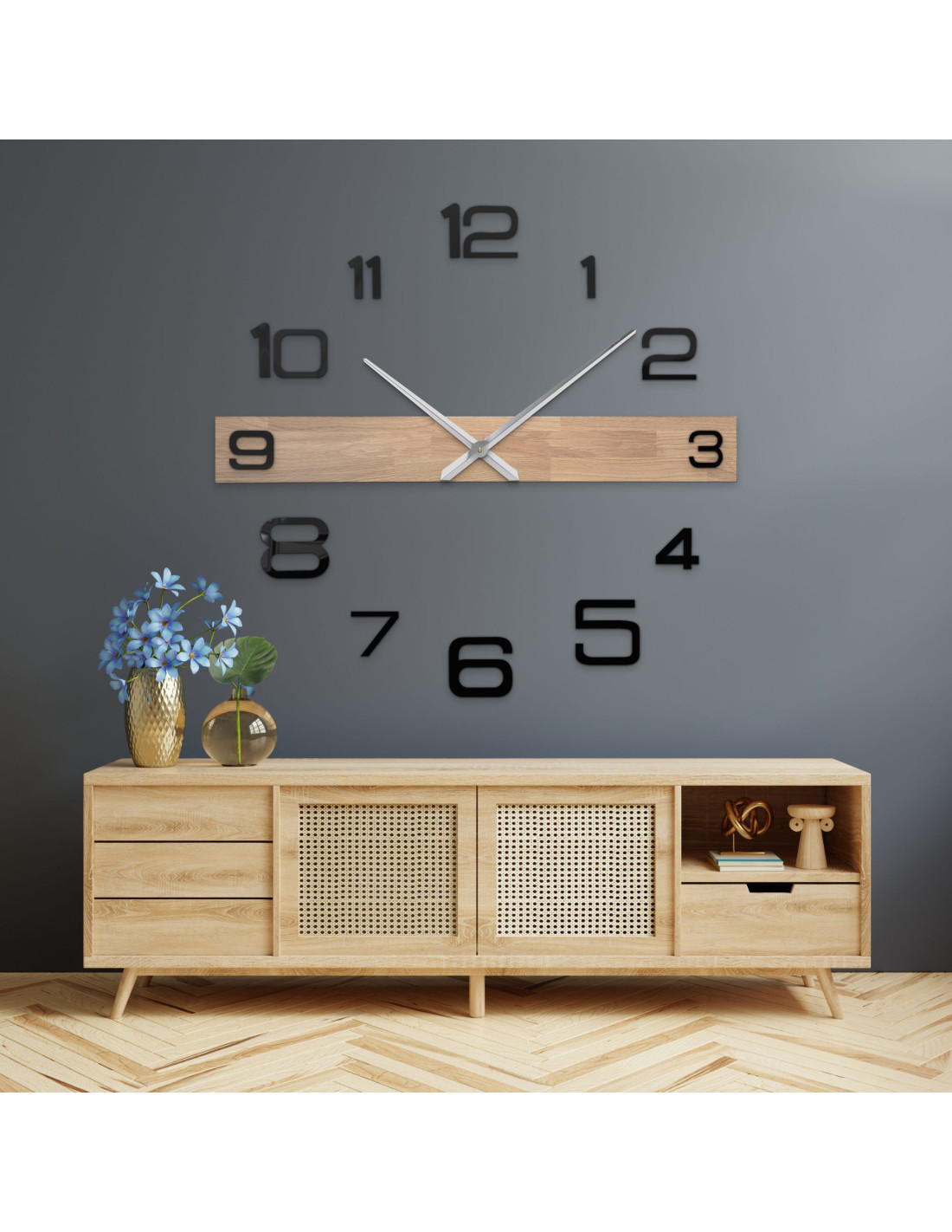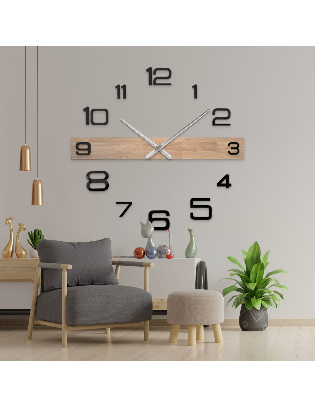 • Clock hands: metallic silver/black – minute hand 31 cm (12.2 inches), hour hand 39 cm (15.4 inches)
