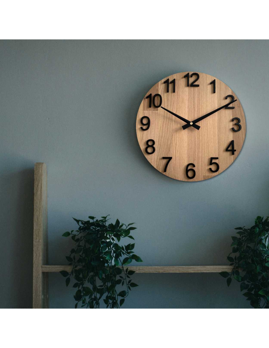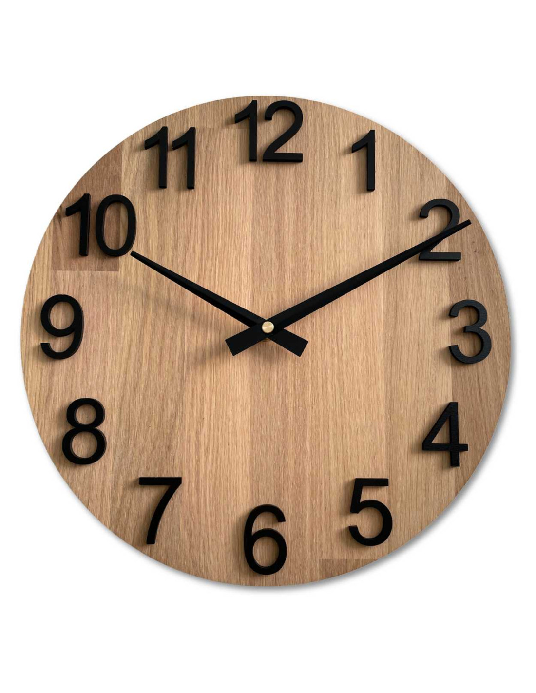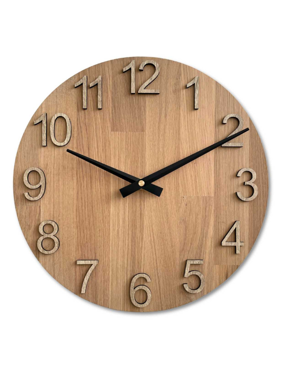 Each clock is made from solid oak panels, which are first precisely cut into the desired shape and size using CNC technology.