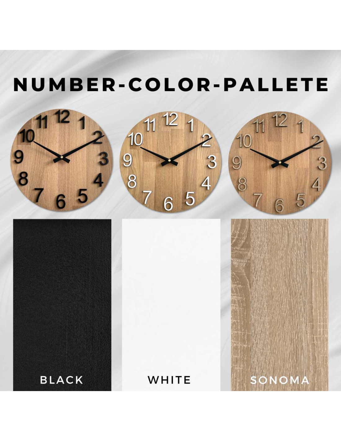 ➡️ Structure: Each clock is unique, as every piece of wood has a different texture, grain arrangement, and wood shade.