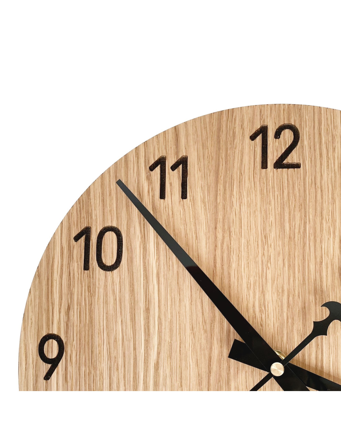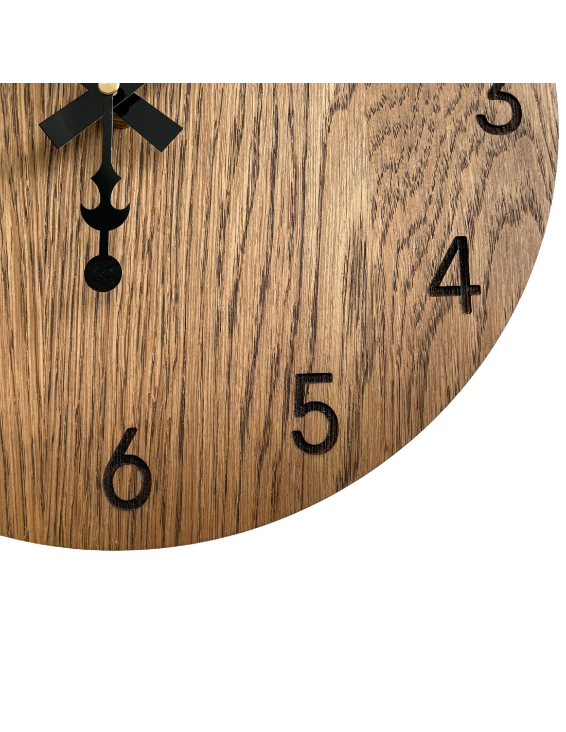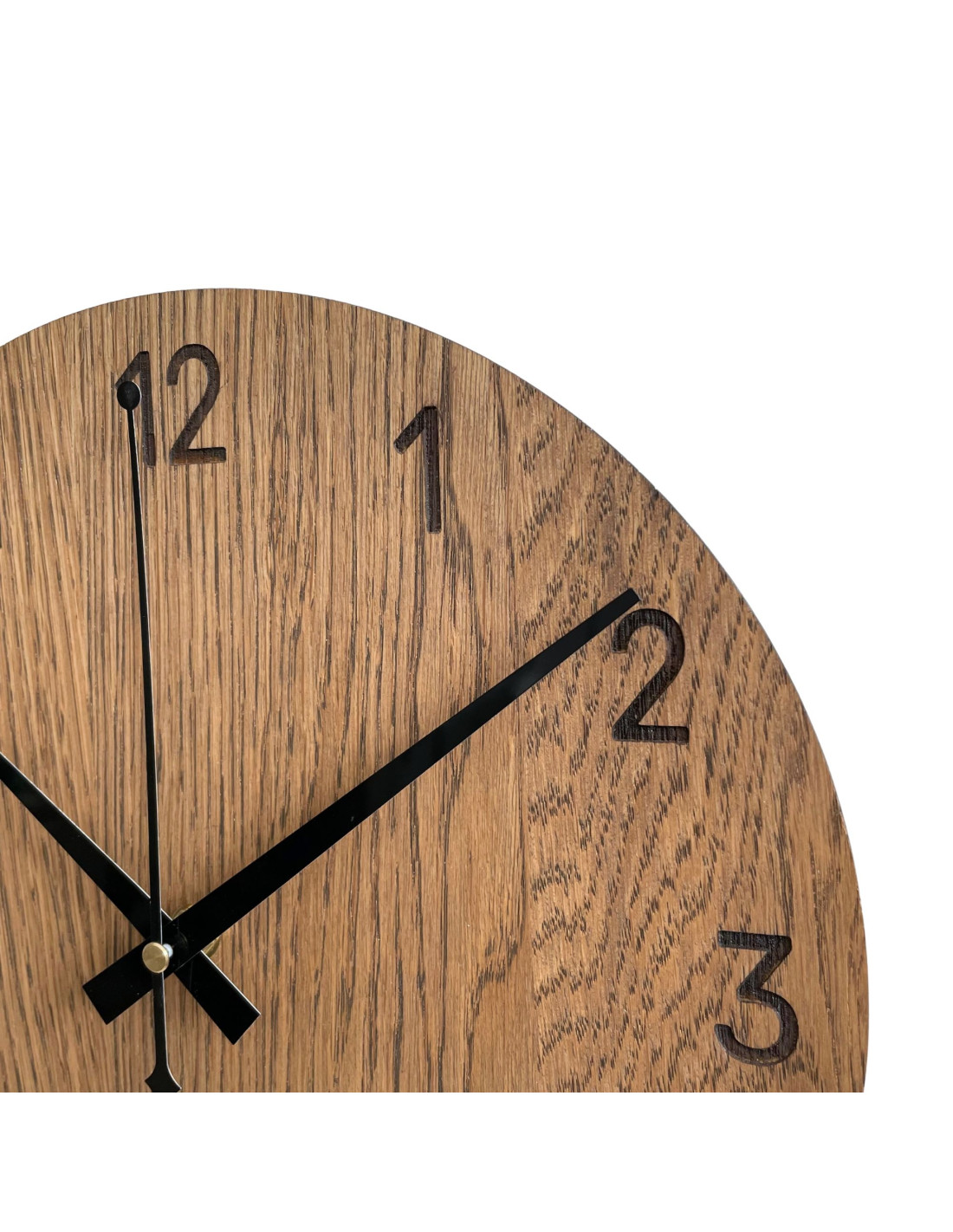 The natural beauty of oak wood combined with elegant black hands creates a subtle and modern look. The clock blends perfectly with both rustic and minimalist interiors and brings a harmonious visual element to the space.
