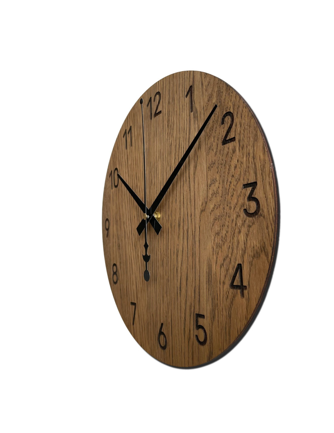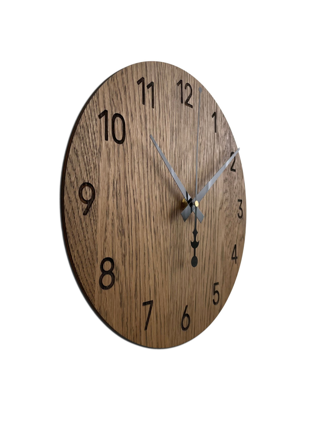 Modern wall clocks made of real oak wood bring a combination of craftsmanship, silence and timeless aesthetics .