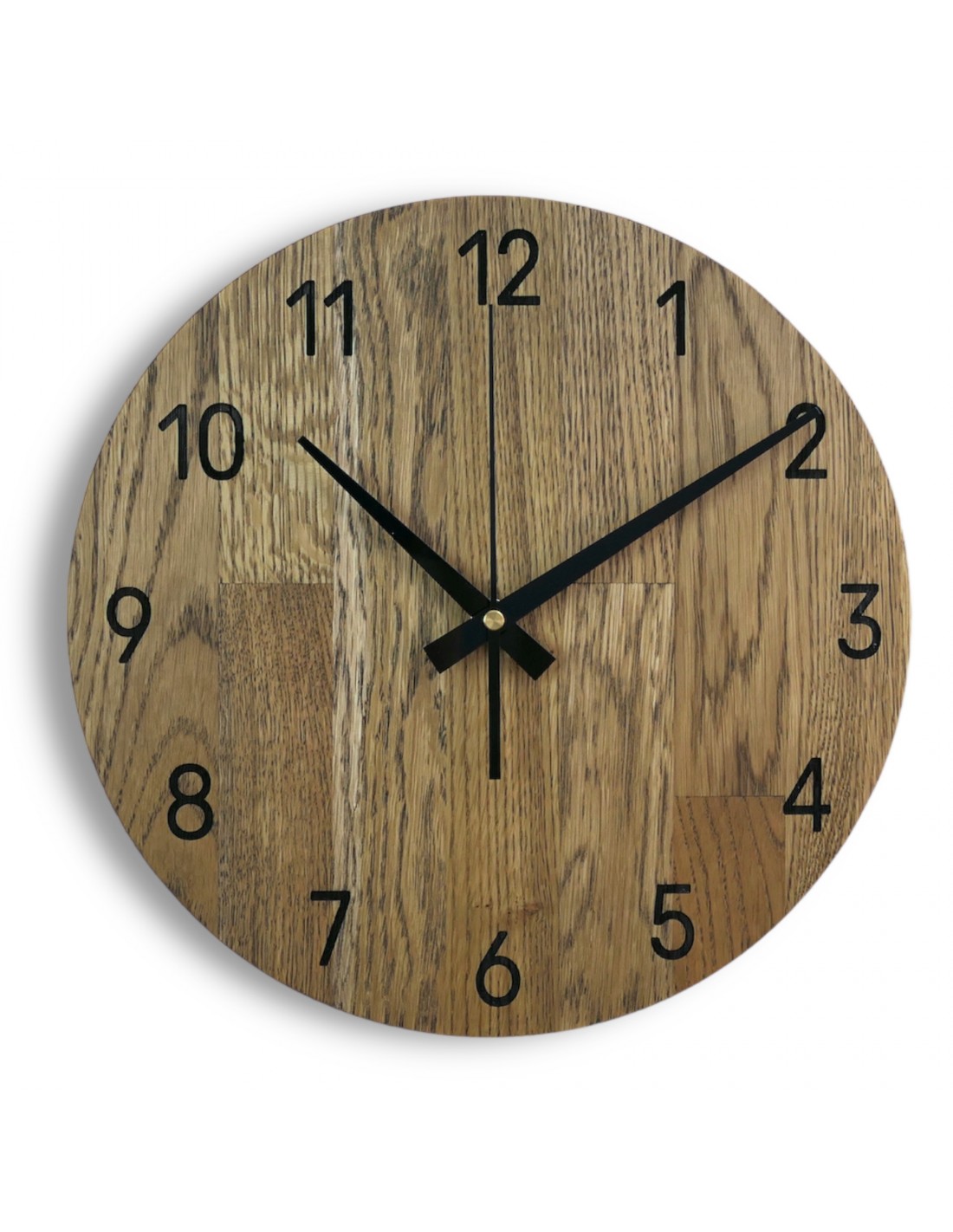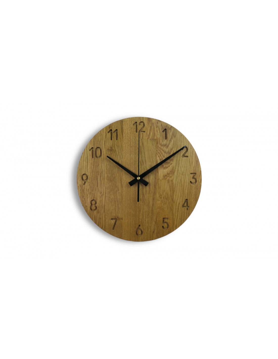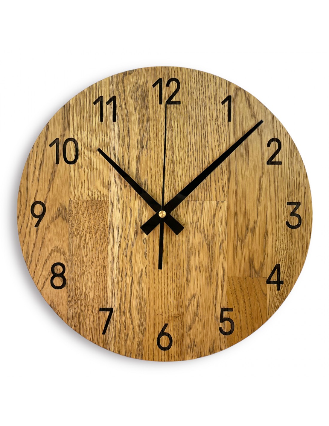 Each clock is made from solid oak panels, which are first precisely cut into the desired shape and size using CNC technology.