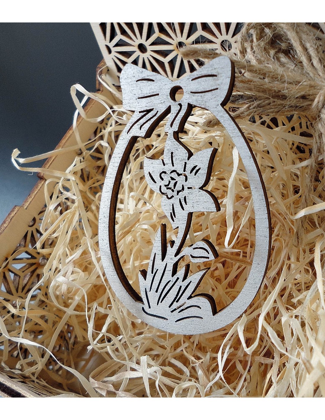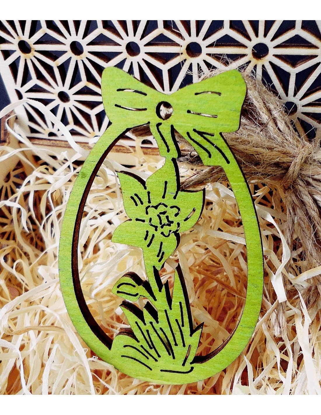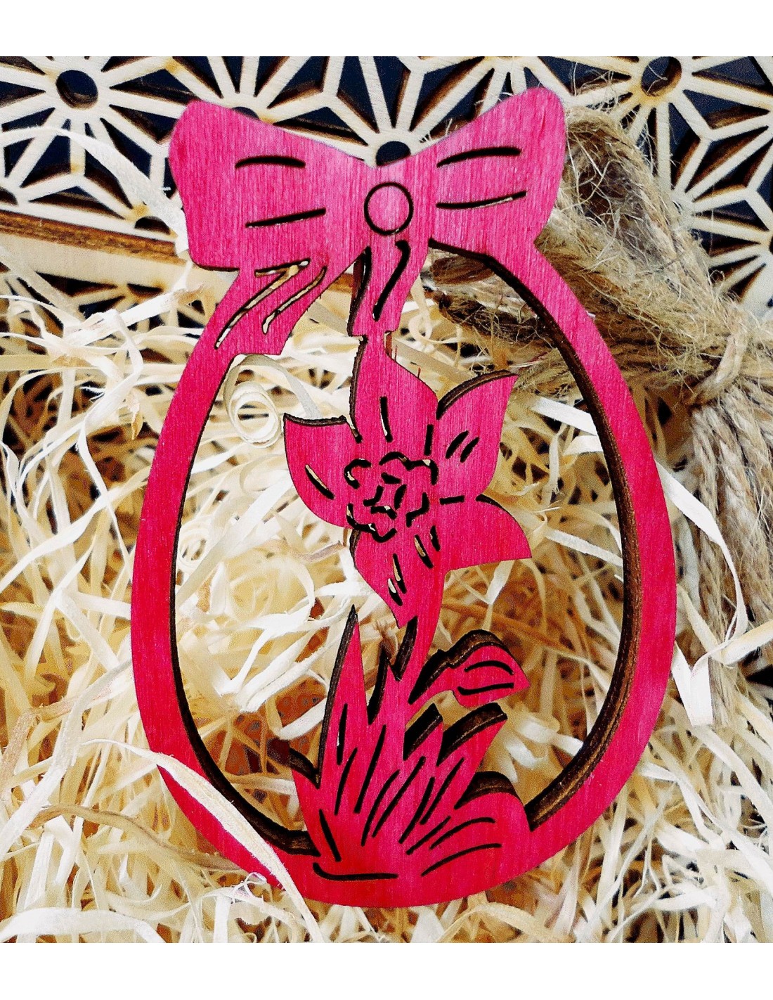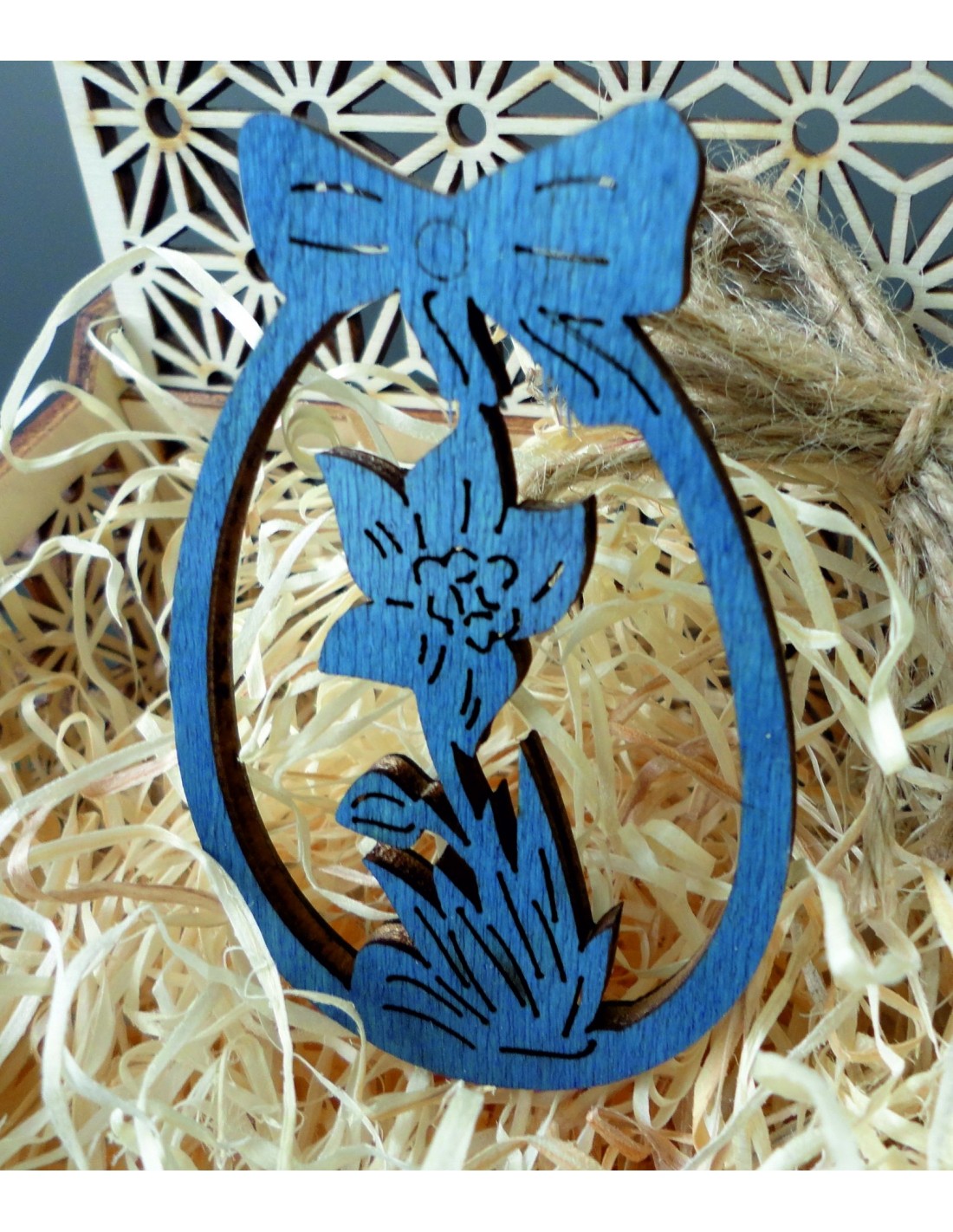 A decorative wooden egg with a carved floral motif and a bow is a great addition to any home. Perfect for Easter celebrations or as an artistic element that will add style and uniqueness to your interior. With this beautiful egg, you will liven up any space and create a cheerful atmosphere!