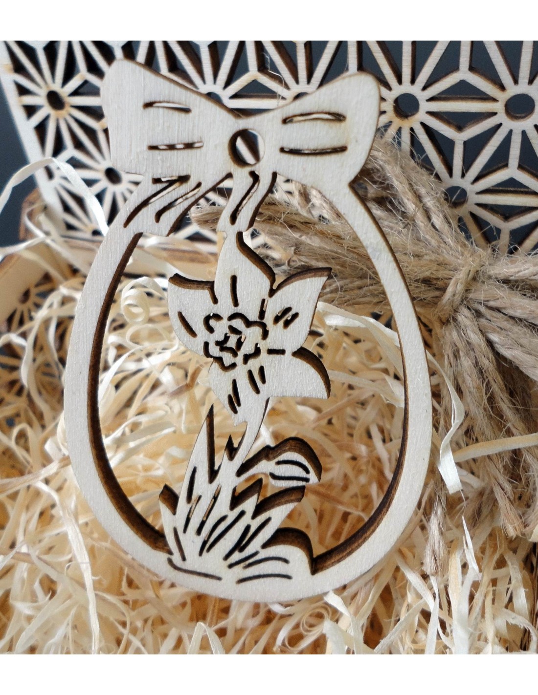 Liven up your home with this unique decorative wooden egg, which is the perfect addition to any occasion. The egg is made of quality wood and has an elegant carved design that depicts a floral motif and a bow . This combination adds grace and charm to the egg. The carved flower motif with a bow is not only aesthetically pleasing, but also symbolic, making it an ideal element for Easter celebrations or interior decoration. The egg is made of quality plywood wood, which guarantees longevity and durability, while its natural appearance adds a cozy and warm touch. You can simply place it on a table, shelf or use it to create arrangements with other decorations.