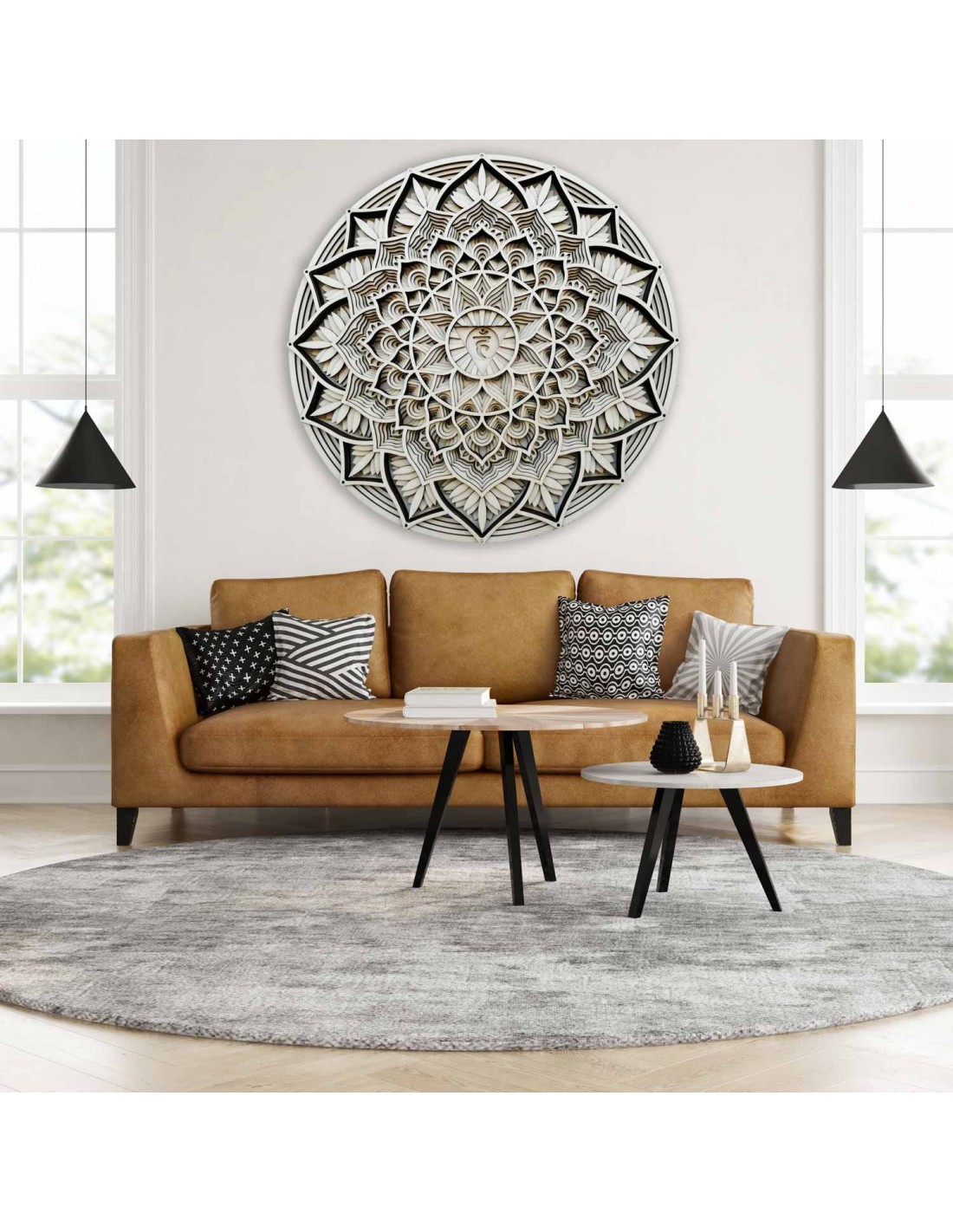 The exclusive and detailed mandala is composed of several layers that together create a 3D effect. The mandala patterns symbolize the idea that life never ends and everything is interconnected.