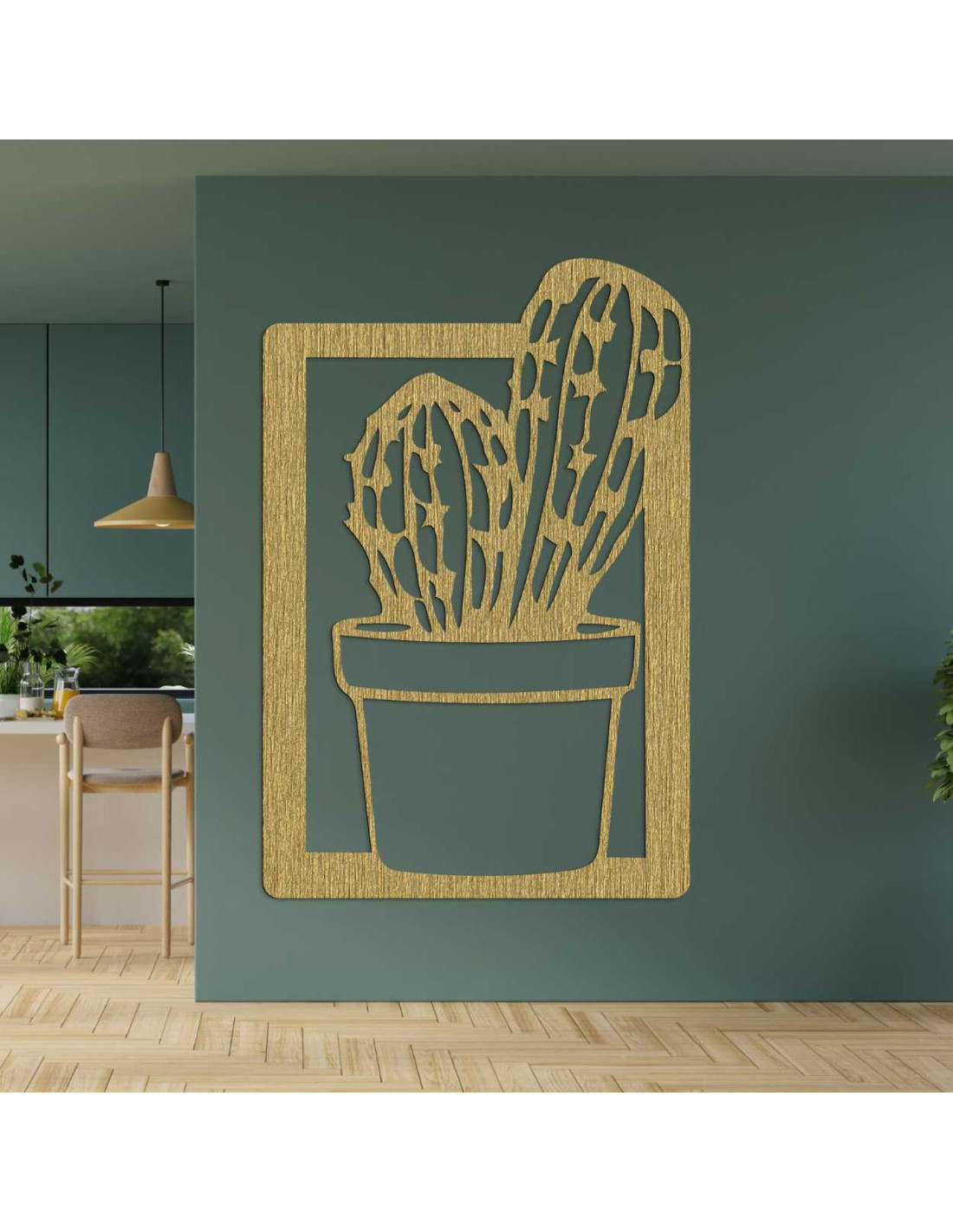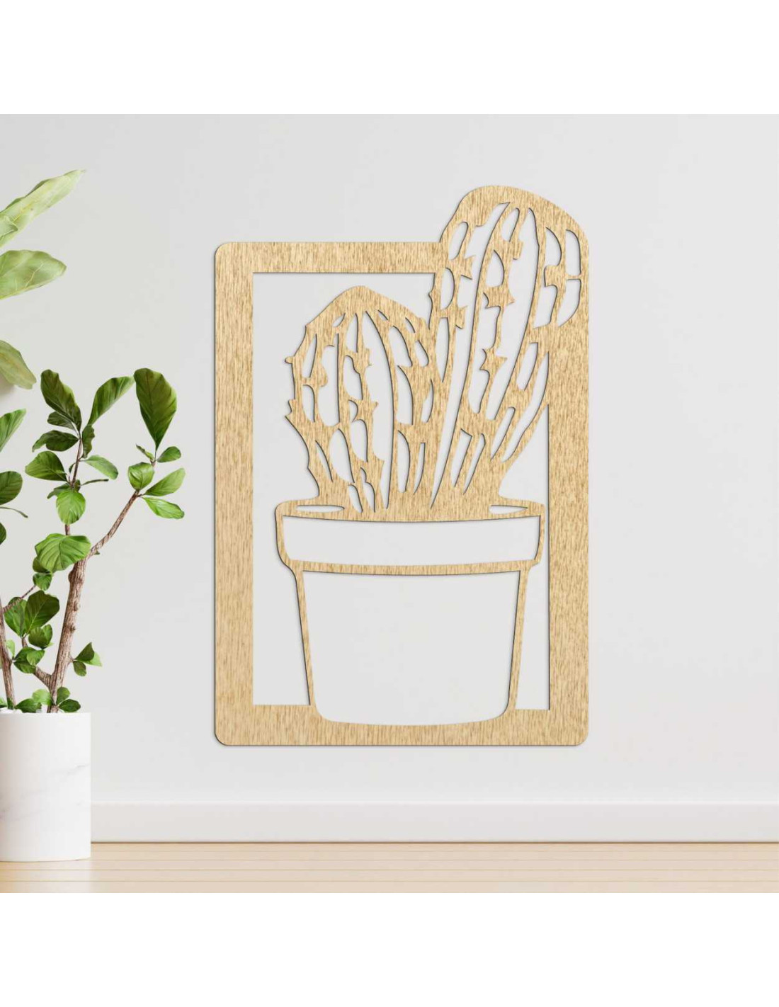 Stylish wooden wall panel with a cactus, suitable for the living room or office.